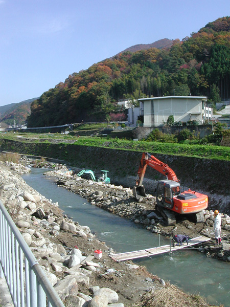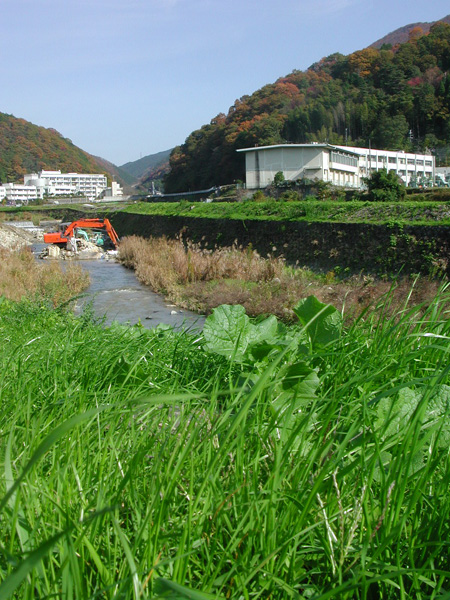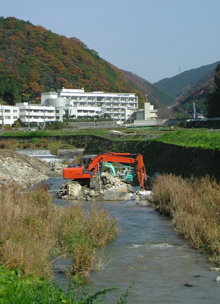 | あれ?あれあれあれ?自慢の余野川になにやら荒荒しい機械が、、、、、、 |